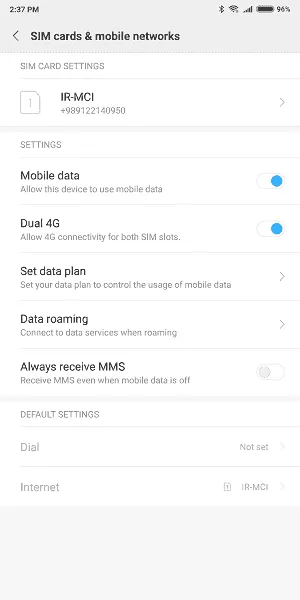 Sim cards & Mobile Networks: این گوشی همانطور که گفتیم از دو سیمکارت پشتیبانی میکند و به همین سبب حضور بخشی مخصوص این قسمت غافلگیرکننده نیست. در این بخش میتوانید تعیین کنید که هر دو سیمکارت در شبکه 4G فعالیت کنند. برای مصرف دیتا از سیمکارت محدودیت تعیین کنید و درنهایت هر کدام از دو سیمکارت را برای استفاده از دیتا یا استفاده از تماس بهعنوان سیمکارت پیشفرض تعیین کنید.