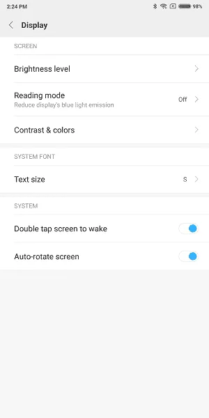 Double tap screen to wake: با فعال کردن این بخش هر زمان که صفحه گوشی خاموش باشد با دو بار ضربه زدن روی آن میتوانید صفحه را روشن کنید.