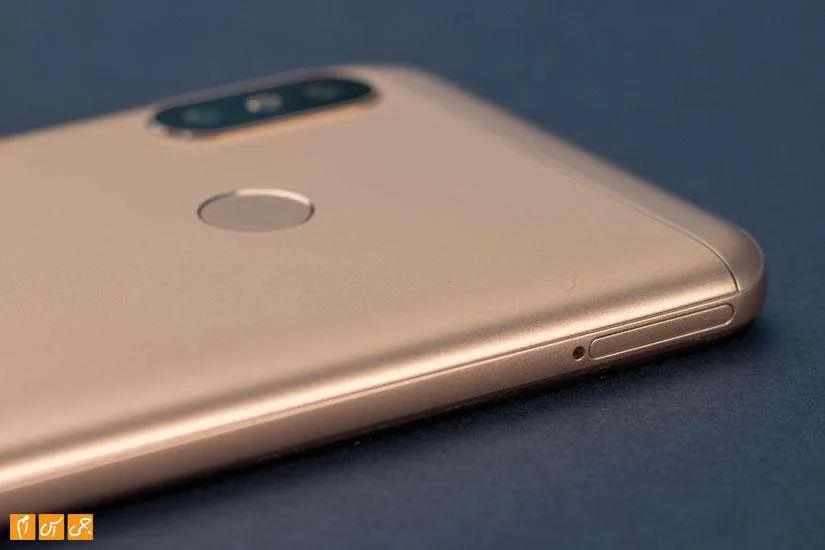 فریم اطراف دستگاه مانند بدنه از فلز ساخته شده که دقیقا همرنگ بدنه است. با وجود اینکه صفحهنمایش بزرگ است اما از نظر ابعاد شاسی با گوشی بزرگی روبرو نیستیم منتهی یکی از ایرادات اصلی A2 lite ضخامت زیادش است. اولین بار که گوشی را ببینید و دست بگیرید این ضخامت زیاد بهخوبی خودش را نشان میدهد و توجه شما را جلب میکند. یکی دیگر از ایراداتی که میتوان به گوشی وارد دانست فاصله میان باتری و قاب پشتی دستگاه است که با چند بار ضربه زدن به بخش میانی قاب پشتی میتوانید به وجود این فضای خالی پی ببرید و شیائومی باید فکری به حال این طراحی و قرار گرفتن باتری بکند.