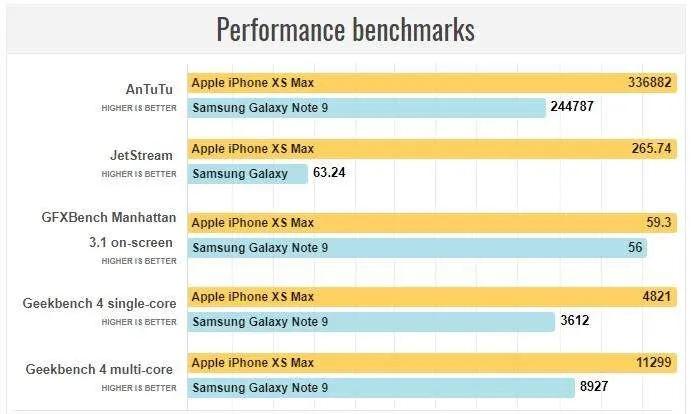 گلکسی نوت 9 گوشی هوشمند سطح بالاییست که با تواناییهای متعدد خود مرز میان یک گوشی هوشمند با یک دستگاه چند منظوره را درنوردیده است. از طرف دیگر آیفون 10 اس مکس تنها یک گوشی هوشمند به شمار میرود.