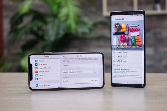 البته هر دو گوشی گلکسی نوت 9 و آیفون 10 اس مکس از فیلتر رنگ آبی تحت عنوان Night Shift پشتیبانی میکنند. این فیلتر رنگ آبی را از سایر رنگها جدا میکند تا تصاویر گرمتر به نظر بینند برسند. البته مشکلی که فیلتر رنگ آبی در سامسونگ ایجاد میکند هم این است که قرمزها کمی آزاردهنده میشوند.