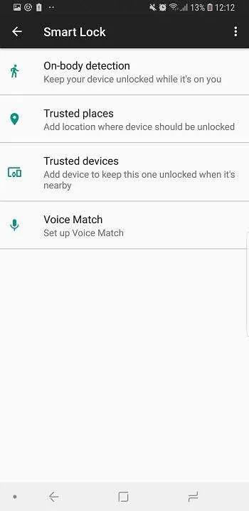 با این روش میتوانید قفل گوشی هوشمند خودتان را در شرایط متفاوت باز نگه دارید بدون اینکه بخواهید از رمز استفاده کنید. در این بخش 4 روش برای باز نگه داشتن قفل گوشی وجود دارد. روش اول این است که گوشی تا زمانی که تشخیص دهد در دستان شما است قفل را فعال نمیکند و بهمحض اینکه هیچ موشن حرکتی روی آن انجام نشود قفل را فعال میکند. در روش دوم اگر به جایی مانند منزل خودتان برسید بهمحض تشخیص مکان گوشی قفل را غیر فعال میکند و هر بار که میخواهید از تلفن خودتان استفاده کنید نیاز به عبور از صفحه قفل نیست. حالت سوم زمانی است که دستگاه به یک دستگاه دیگر که شما به آن اطمینان دارید متصل شود بهطور مثال اگر گوشی به یک اسپیکری که از قبل برایش تایید دادهاید متصل شود تا زمانی که این اتصال برقرار است قفل انجام نمیشود و در حالت آخر اگر به گوشی خودتان بگویید ok google و تشخیص دهد که صدا مربوط به شما است قفل باز میشود. در تمام این حالتها باید از قبل برای گوشی همه این اطلاعات را تعریف کرده باشید.