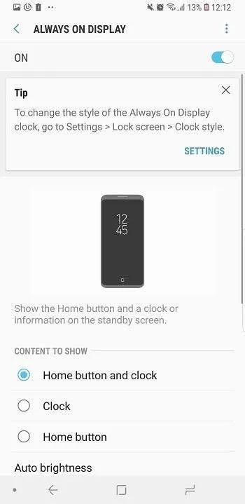 این گزینه را دیگر همه میشناسند. با فعال کردن این بخش میتوانید با قفل شدن صفحهنمایش گوشی خودتان اطلاعاتی کامل از جمله ساعت، تاریخ، میزان باتری و نوتیفیکیشن ها را بدون روشن کردن صفحهنمایش مشاهده کنید. در این نسخه از رابط کاربری سامسونگ امکان شخصیسازی بالایی برای این بخش در نظر گرفته شده که از طریق همین منو میتوانید تمام این تغییرات از جمله روشنایی خودکار، زمان بدی برای نمایش و انتخاب تم را اعمال کنید.