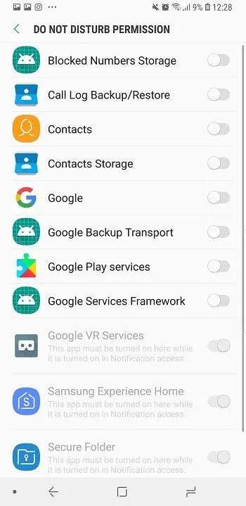 لیستی از برنامهها در اینجا به نمایش در میآیند که توانایی تغییر تنظیمات do not disturb را دارند. اگر با این ویژگی آشنا نیستید باید بگوییم که این گزینه به معنای "مزاحم نشو" است و با فعال کردن آن دیگر هیچ نوتیفیکیشنی را دریافت نمیکنید و هیچ تماسی مزاحم استراحت یا جلسه شما نمیشود در حالی که دستگاه و خط در وضعیت فعال قرار دارند.