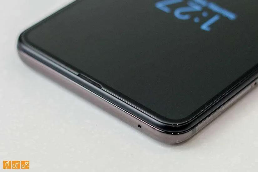 صفحهنمایش هیچ خمیدگیای در کنارههای خودش ندارد و کاملا تخت طراحی شده اما در عوض در کنارههای قاب پشتی خمیدگیهایی در نظر گرفته شده تا بتواند هنگام استفاده از گوشی راحت در کف دست بنشیند.
