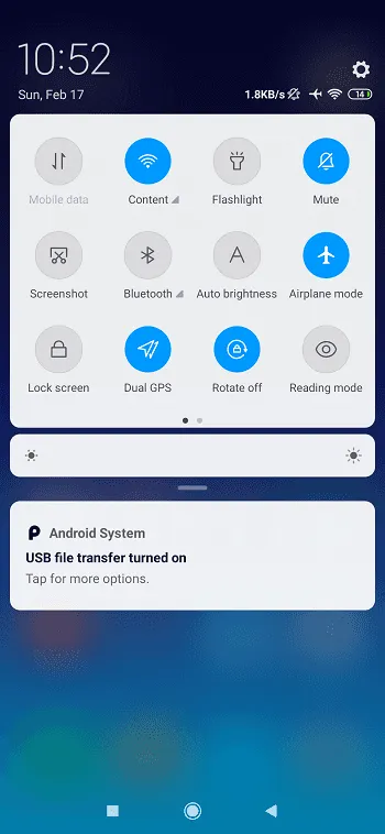 صفحه اصلی همه چیز را اعم از برنامهها و ویجت ها داخل خودش جای داده است. با پایین کشیدن انگشت از بالا به سمت پایین در صفحهنمایش میتوانید بخشی را مشاهده کنید که نامش نوتیفیکیشن بار است. این بخش طراحی متفاوتی با آن چیزی که در گوشیهای اندرویدی امروزی میبینیم دارد. اسلایدر تنظیم روشنایی بسیار زیبا و با اندازه بزرگی در نظر گرفته شده و این امکان را میدهد بهراحتی به کم و زیاد کردن نور صفحه بپردازید. امکان قرار گرفتن 21 سوییچ در این بخش وجود دارد تا تعداد دفعات مراجعه شما به منوی تنظیمات کاهش پیدا کند.