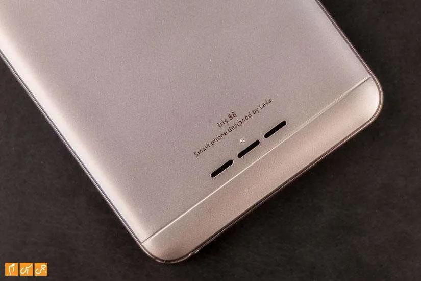 پایین گوشی درگاه ارتباطی از نوع میکرو یو اس بی به همراه میکروفون اصلی دستگاه قرار دارند و بالای آیریس 88 تنها گزینهای که دیده میشود خروجی جک 3.5 میلیمتری صدا است.