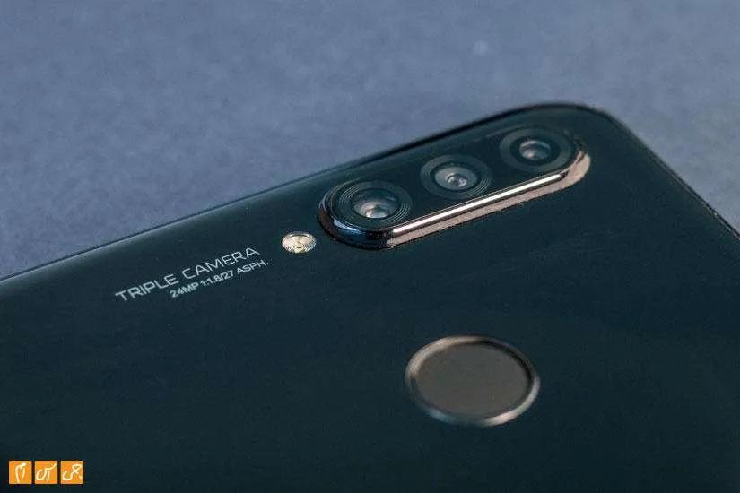 در قاب پشتی این گوشی 3 لنز برای دوربین اصلی در نظر گرفته شده که لنز اصلی سنسور 24 مگاپیکسلی با اندازه دهانه دیافراگم f/1.8 دارد. لنز بعدی که زاویه دید فوق عریض دارد نقطه فوکوسش ثابت است و سنسور 8 مگاپیکسلی برایش در نظر گرفته شده و درنهایت لنز بعدی سنسور 2 مگاپیکسلی دارد و برای تشخیص عمق استفاده میشود. یک فلش LED هم خارج از قابی که این سه لنز هستند دیده میشود.