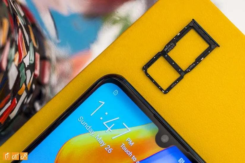 بالای گوشی شاهد حضور میکروفون دوم و درگاه سیم کارت هستیم. با بیرون کشیدن درگاه سیم کارت میبینید که گوشی از دو سیم کارت همزمان پشتیبانی میکند؛ علاوه بر این امکان استفاده از کارت حافظه خارجی هم وجود دارد منتهی اگر میخواهید کارت حافظه روی دستگاه بگذارید باید استفاده از سیم کارت دوم را فراموش کنید.