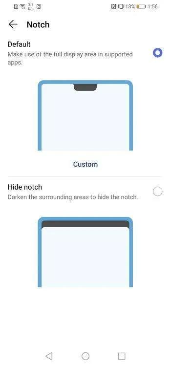 Notch: در این تنظیم میتوانید ناچ قطرهای که بالای صفحهنمایش قرار گرفته را مخفی کنید. اگر حالت مخفی کردن ناچ را انتخاب کنید رنگ مشکی اطراف ناچ ریخته میشود که دیگر ناچ را در استفاده معمولی نمیبینید.