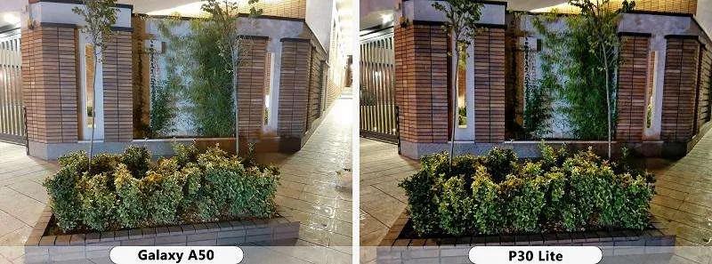 در شرلیط نوری کم هم هر دو گوشی تقریبا عملکرد یکسانی از خودشان نشان میدهند و عکسها با وجود اینکه نویز بیشتری از نور روز دارند اما عملکرد قابل قبولی به نمایش میگذارند. اما باز هم رنگ در عکسهای ای 50 بهتر است و عکسهای پی 30 لایت کاملا شارپتر.