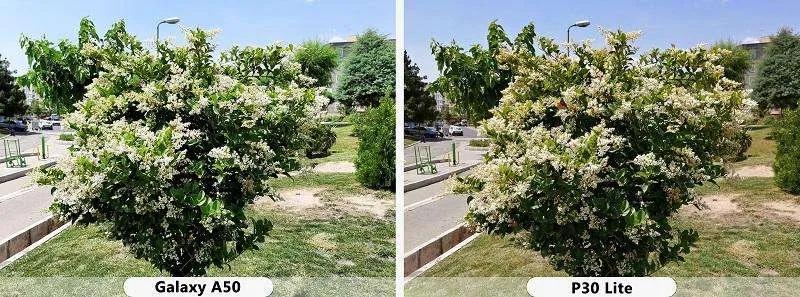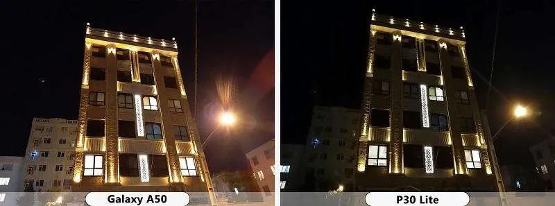 از نظر عدد مگاپیکسلی هر دو گوشی تقریبا در یک سطح هستند. برای دوربین اصلی پی 30 لایت لنزهای 24، 8 و 2 مگاپیکسلی و برای گلکسی ای 50 لنزهای 25، 8 و 5 مگاپیکسلی در نظر گرفته شده است. دوربین سلفی برای پی سی لایت 2۴ و برای گلکسی ای 50 عدد 25 مگاپیکسل است. از نظر عملکرد و اعداد و ارقام دوربینهای هر دو گوشی کاملا شبیه به هم هستند اما چیزی که در نهایت سبب میشود تفاوت بین کارکرد دوربینها حس شود نمونه عکسهایی است که با هر دو گوشی در شرایط یکسان گرفته شده.