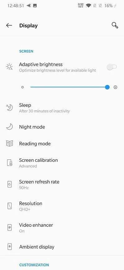 Resolution: در این بخش میتوانید بنا بر دلخواه خودتان کیفیت صفحه را تعیین کنید. سه گزینه در اینجا دیده میشود؛ حالت خودکار که به با توجه به محتوای در حال پخش خود گوشی کیفیت صفحه را به طور خودکار تنظیم میکند. گزینههای دیگر QHD+ و FHD+ هستند که میتوانید یکی از آنها را انتخاب کنید.