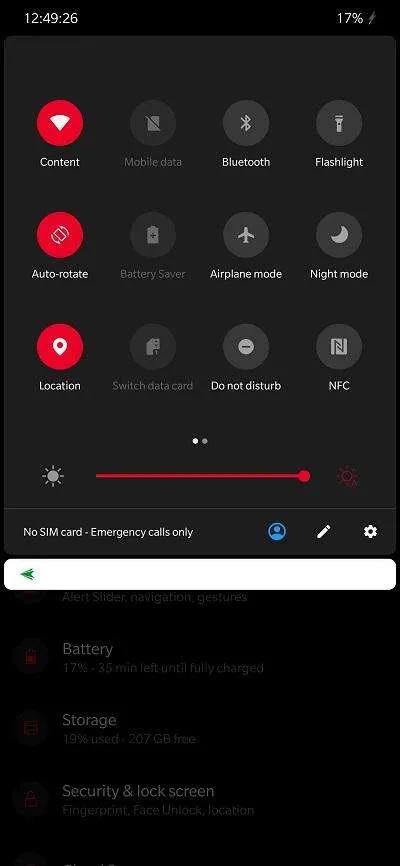 سوییچهایی که در نوتیفیکیشن بار قرار دارند در دو صفحه هستند که در مجموع میتوانید 23 سوییچ را در آنها داشته باشید. شاسی مخصوص کم و زیاد کردن روشنایی صفحه پایین این بخش قرار دارد و با نگه داشتن انگشت روی هر سوییچ به بخش تنظیمات آن منتقل میشوید.
