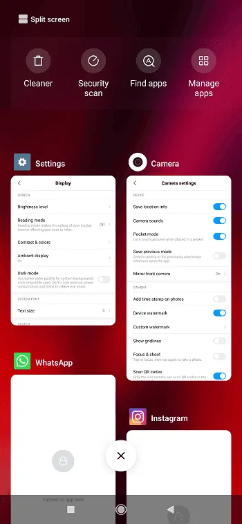لیست برنامه های اخیر در این رابط کاربری کاملا با آن چیزی که در گوشی های دیگر مشاهده می کنید متفاوت است. در این بخش برنامه های باز در پس زمینه در دو ردیف نمایش داده می شوند که بالای آن ها هم چند آیکون ظاهر می شود که توسط آن ها می توانید کنترل کامل تری روی این بخش داشته باشید.
