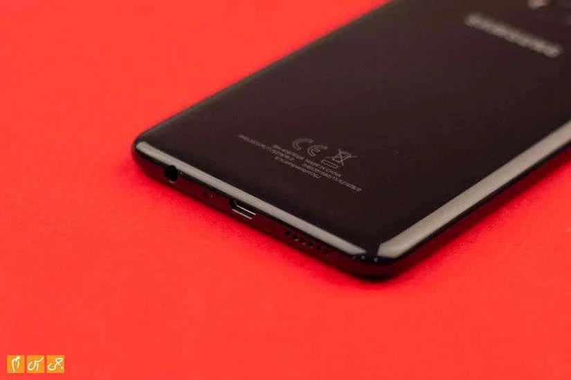 پایین گوشی درگاه ارتباطی میکرویو اس بی را کنار میکروفون اصلی، اسپیکر و سوکت جک 3.5 میلیمتری صدا مشاهده میکنید. بالای گوشی هم میکروفون دوم قرار گرفته.