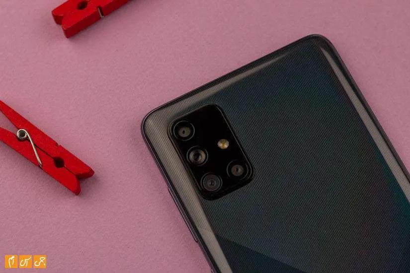 لنز اصلی که سنسور 64 مگاپیکسلی دارد زیر این لنز قرار گرفته. لنز بعدی برای گرفتن عکسهای زاویه دید زیاد به کار میرود و سنسورش 12 مگاپیکسلی است و در نهایت لنزی که کنار این لنزهاست و زیر فلش قرار گرفته سنسورش 5 مگاپیکسلی است. دوربین سلفی هم مثل ای 51 یک لنز با سنسور 32 مگاپیکسلی دارد.