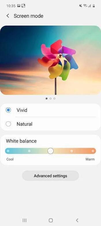 اسکرین مود به کاربر امکان میدهد تا از پتانسیل نمایشی صفحهنمایش استفاده بسیار بالایی داشته باشد. در این تنظیم میتوانید حالتهای طبیعی یا ویوید را انتخاب کنید علاوه بر اینکه امکان تنظیم رنگها از نظر گرما با توجه به سلیقه شما فراهم میشود.