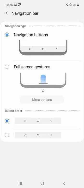 در تنظیمات صفحهنمایش میتوانید کلیدهای ناوبری را حذف کنید و از حرکات جسجری برای حرکت در منوها استفاده کنید.