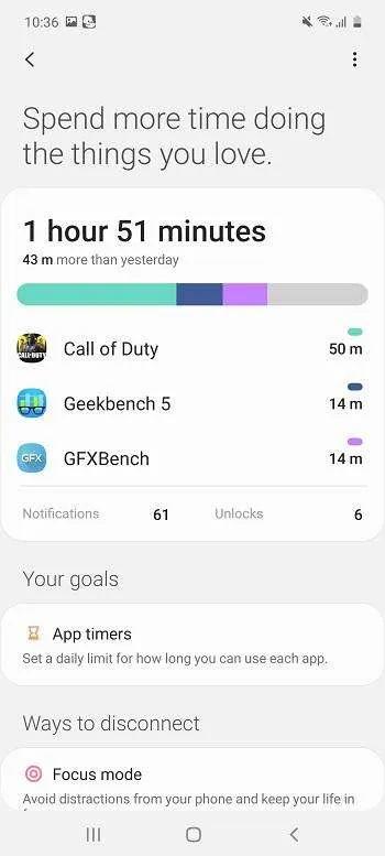 مدیریت زمان یکی دیگر از بخشهای نرمافزاری است که به شما امکان میدهد کنترل کاملی روی مدت زمان استفاده از برنامهای مختلف روی گوشی داشته باشید.