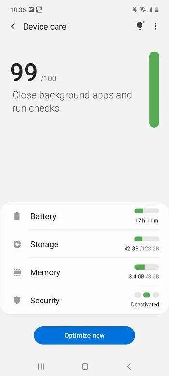 Device Care گزینهای کاربردی و دوست داشتنی در این بخش بهحساب میآید که به شما امکان میدهد از وضعیت سلامتی گوشی خودتان در بخشهای باتری، حافظه، رم و امنیت مطلع باشید.