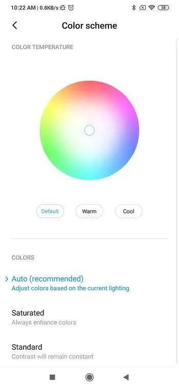 Color Scheme: این بخش این امکان را به شما میدهد که بتوانید گرمای رنگهایی که در این صفحه به نمایش در میآیند با توجه به سلیقه خودتان تنظیم کنید.