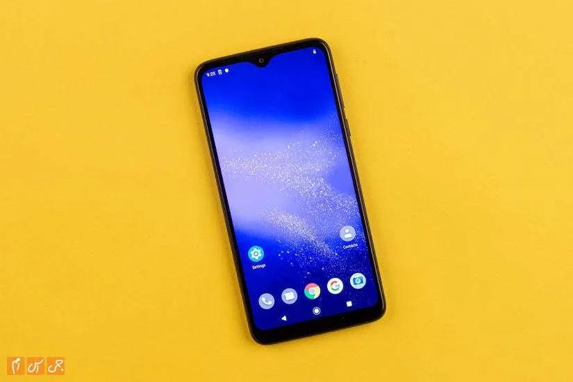 صفحه گوشی را که روشن کنید صفحهنمایشی با اندازه 6.2 اینچ روبروی شما قرار میگیرد. این صفحهنمایش بالای خودش ناچی قطرهای میبیند که در بیشتر گوشیهای میان رده امروزی این ناچ را میبینیم اما چیزی که نظر شما را جلب میکند حاشیههای زیاد صفحهنمایش هستند که بهخصوص در قاب بالا و پایین بیشتر مشهودند. به علت این حاشیههای زیاد صفحهنمایش اندازه شاسی برای صفحهای 6.2 اینچی بسیار بزرگ است. در مجموع از منظر خوشدستی با گوشیای خیلی خوشدست روبرو نیستید و در این بخش تنها مزیتش این است که وزن زیادی ندارد و خیلی سر نیست.