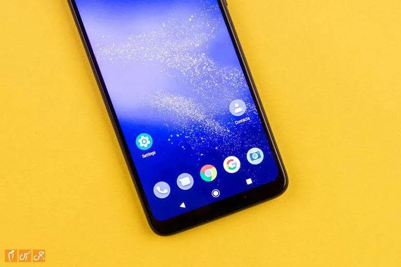 در بخش صفحهنمایش با صفحهای 6.2 اینچی روبرو هستیم که اندازه خیلی بزرگی برای گوشیهای امروزی به حساب نمیآید اما اندازهای کاملا مناسب است. این صفحهنمایش رزولوشن اچ دی دارد و خوشبختانه جنسش از IPS است. همانطور که اشاره کردیم حاشیههای صفحهنمایش زیاد هستند و به همین سبب فقط 81.3 درصد از قاب جلو در اختیار صفحهنمایش قرار دارد.