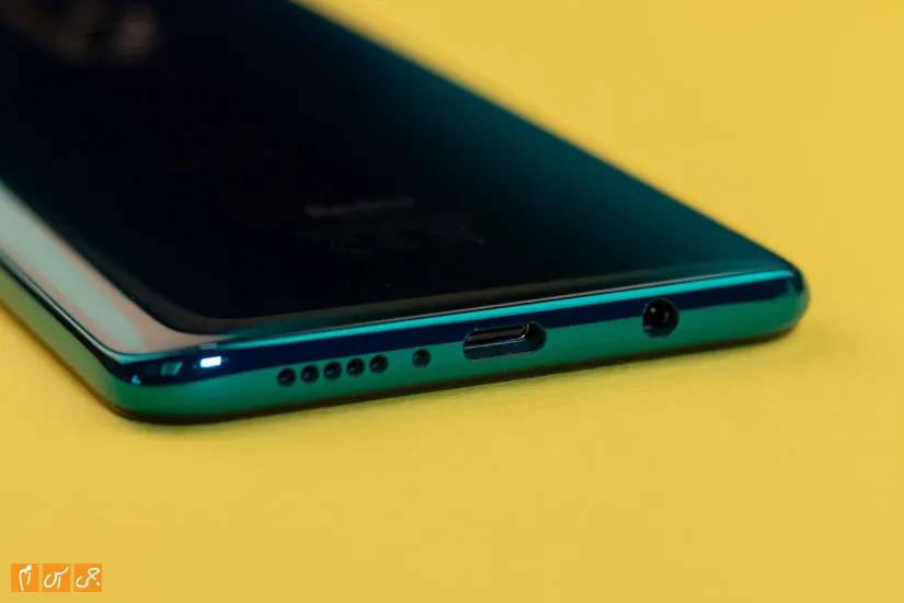 سمت راست کلیدهای ولوم و پاور قرار دارند با طراحی کاملا شبیه به هم؛ سمت چپ درگاه سیم‌کارت‌هاست که درگاه سیم‌کارت دوم با کارت حافظه خارجی مشترک است. بالای گوشی میکروفون دوم را کنار درگاه اینفرارد می‌بینیم و پایین گوشی هم درگاه ارتباطی تایپ سی کنار اسپیکر و میکروفون اصلی قرار گرفته و جک 3.5 میلی‌متری صدا را هم اینجا می‌بینیم.