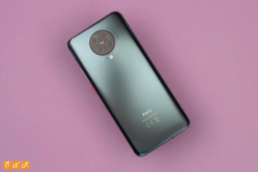 طراحی قاب پشتی به سبب مات بودن حس گوشیای لوکس را القا میکند به علاوه که با گوریلا گلس 5 پوشانده شده و این گوریلا گلس 5 را روی صفحه گوشی هم میبینیم. البته اثرانگشت در قاب پشتی پوکو اف 2 پرو زیاد میماند و در ضمن اینکه گوشی تقریبا لیزی هم هست.