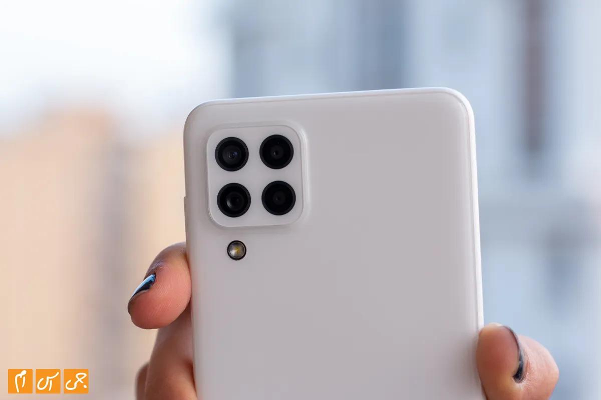 بگذارید به سراغ دوربین گوشی برویم؛ سامسونگ گلکسی A22 از سیستم دوربین چهارگانه استفاده کرده که کیفیت قابل قبولی نیز دارد. دوربین اصلی این گوشی، دارای رزولوشن ۴۸ مگاپیکسل و گشودگی f/1.8 بوده و دارای لرزشگیر اپتیکال یا همان OIS نیز هست؛ یک دوربین ۸ مگاپیکسلی التراواید با زاویه دید ۱۲۳ درجه و گشودگی f/2.2، یک دوربین ماکرو ۲ مگاپیکسلی و در نهایت یک سنسور عمق ۲ مگاپیکسلی جهت عکاسی پرتره نیز آن را همراهی میکنند. در پایین جزیره دوربین چهارگانه گوشی، یک فلش LED به چشم میخورد.