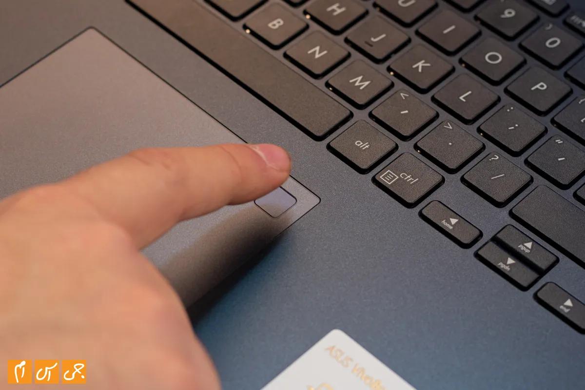 در بخش پایینی این کیبرد، یک ترک پد نسبتا بزرگ هم داریم که در بالا سمت راست آن، سنسور اثر انگشت خیلی خوب ویوو بوک K571LH قرار گرفته است. این سنسور اثر انگشت دقت و سرعت بالایی دارد و با یک اشاره کوتاه، سریعا قفل ویندوز را برای شما باز میکند. خود ترک پد هم عملکرد خیلی خوبی دارد و حساسیت به لمس در آن در محدوده خوبی است. درایورهای ویندوز پرسیژن هم برای این ترک پد نصب شده تا تجربه استانداردی از این ترک پد روی ویندوز داشته باشیم. در کل باید به کیبرد و ترکپد روی این لپتاپ نمره قبولی بدهیم و فقط ای کاش نور پس زمینه کیبرد برای این محصول در نظر گرفته میشد.