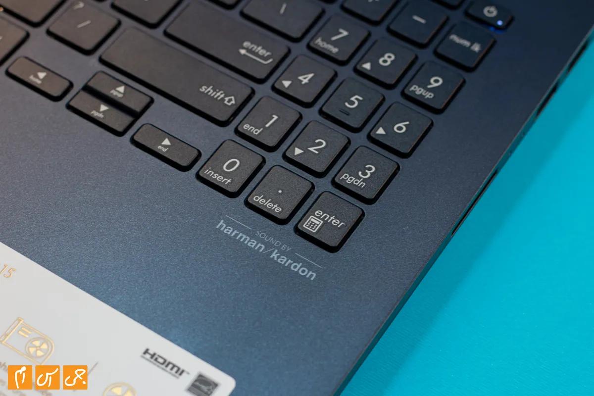در این لپتاپ شاهد بلندگوهای استریو هستیم که توسط harman/kardon تیون شدهاند. این بلندگوها کیفیت صدای نسبتا خوبی دارند و تفکیک صدا هم در سطح خیلی خوبی قرار دارد اما نکته منفی درباره آنها این است که خروجی صدا، در زیر لپتاپ قرار گرفته است. شاید اگر این بلندگوها به گونهای در این لپتاپ جای میگرفتند که خروجی صدا به سمت کاربر باشد، کیفیت صدای بسیار بهتری را شاهد میبودیم. در کل اگرچه نوشته harman/kardon روی بدنه وجود دارد اما قرار نیست چیزی بیشتر از یک بلندگوی معمولی رو به بالا را شاهد باشید.