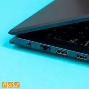 در سمت چپ، پورت شارژ، پورت RG-45 یا همان اترنت، یک پورت USB-A با استاندارد USB 3.0، پورت USB-C با استاندارد USB 3.1 Gen 1 و یک پورت برای هدفون و میکروفون دیده میشوند.