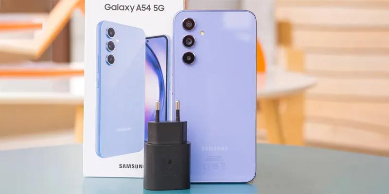 از نظر سرعت شارژ هیچ تفاوتی میان این دو گوشی دیده نمیشود و هر دو دستگاه طی ۳۰ دقیقه حدود ۵۵ درصد شارژ میشوند. بد نیست بگوییم که آداپتور شارژر هم داخل جعبه A55 و A54 وجود ندارد و کاربران باید آن را جداگانه خریداری کنند.