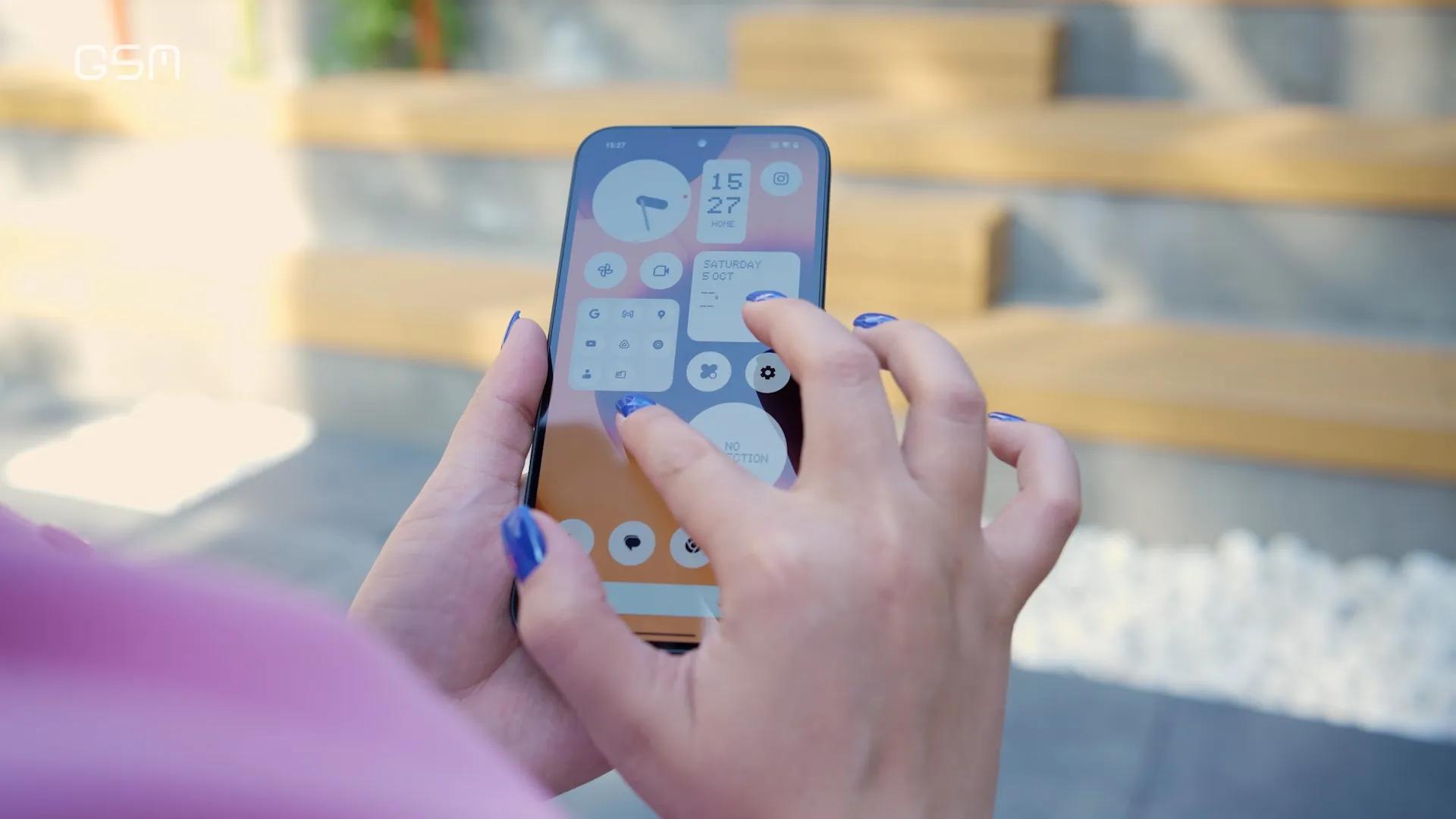 در میان این ویژگیها میتوان به فونت و ویجیتهای خاص ناتینگ اشاره کرد که ظاهر دستگاه را بسیار جذابتر کردهاند. برای تنظیم و استفاده از نوارهای الایدی پشت دستگاه از یک اپلیکیشن به نام Glyph در دستگاه استفاده شده که به کاربر امکان شخصیسازی آن برای سناریوهای مختلف را میدهد.
