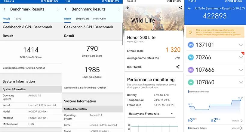 برای مثال آنر ۲۰۰ لایت بازی کالآودیوتی موبایلی را توانست با تنظیمات گرافیکی و نرخ فریم متوسط اجرا کند، ولی در این حالت عملکرد آن مناسب بود و با افت فریم چندان محسوسی مواجه نشدیم.