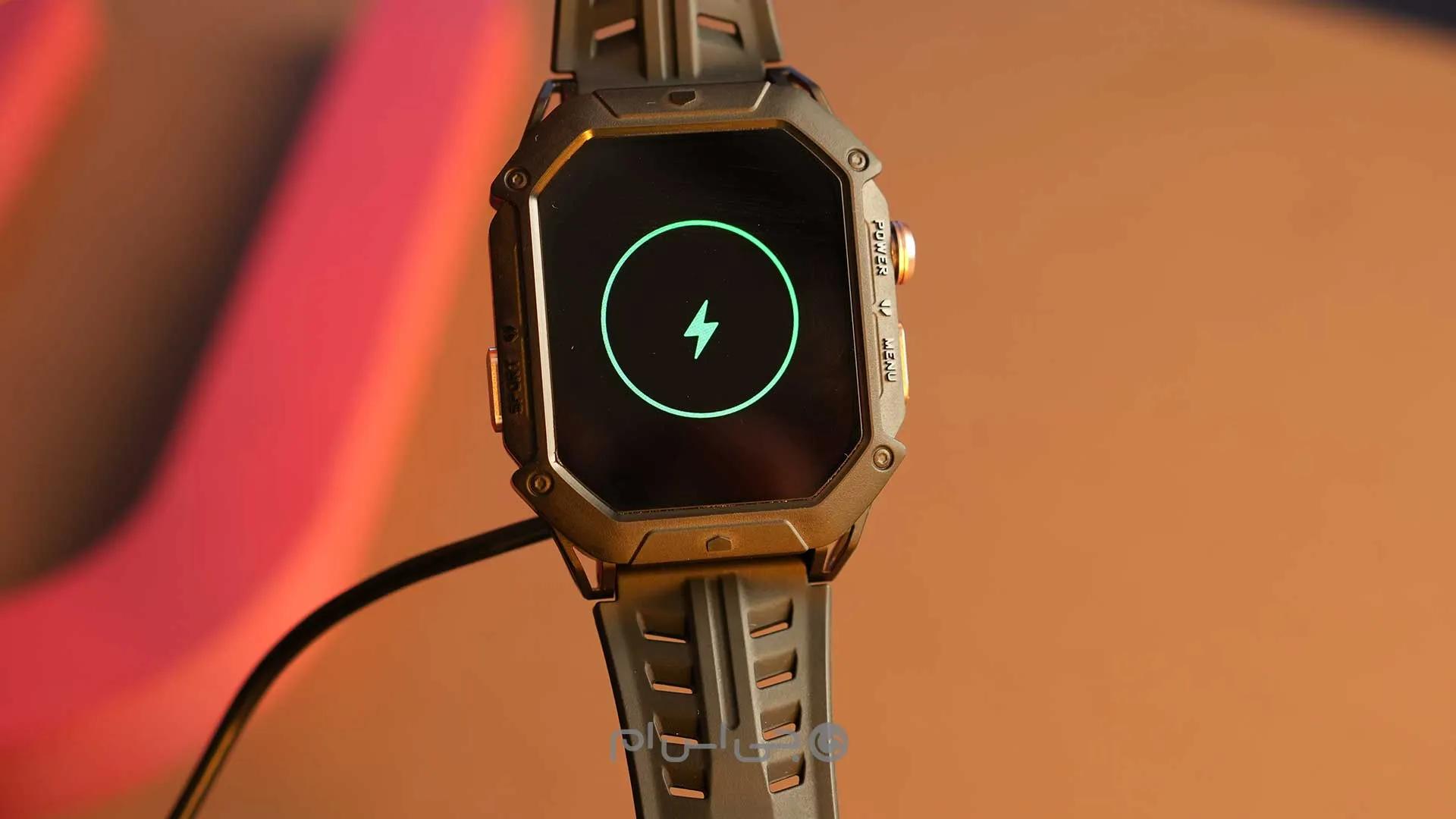 با این ساعت حتی اگر کاربر از قابلیتهای پایش دائم استفاده کند، تا هفتهها نیاز به شارژ مجدد نخواهد داشت. شارژ ساعت هم به کمک کابل ارائه شده در جعبه و پینهای قاب پشتی انجام میشود.