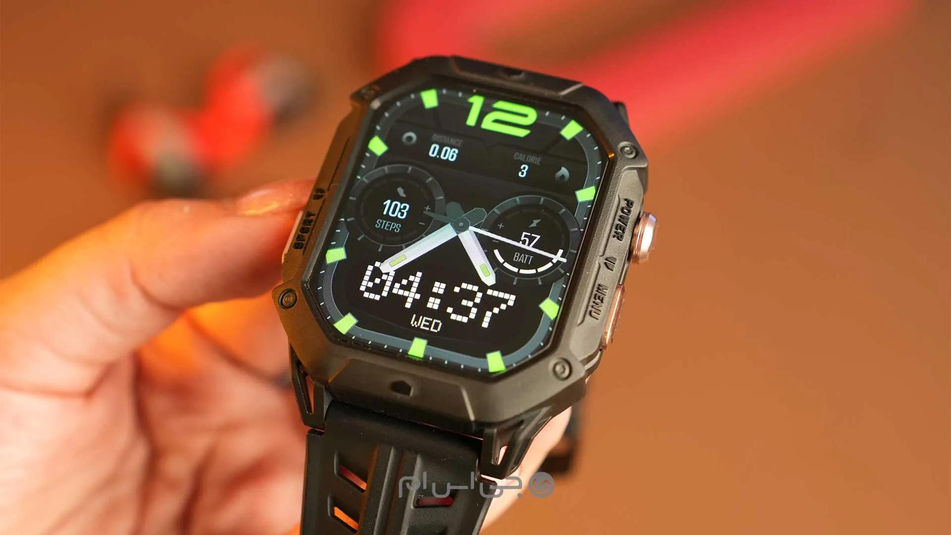 آیرون ان ۱ نهتنها از استاندارد مقاومت نظامی بهره میبرد، بلکه با نمایشگری بزرگ و سنسورهای متعدد، خود را از رقبای همرده متمایز میسازد. این ساعت پاسخی به خواسته کاربرانی است که از ساعت هوشمند خود انتظار شارژدهی بالایی دارند و میخواهند در هر شرایطی از آن استفاده کنند.